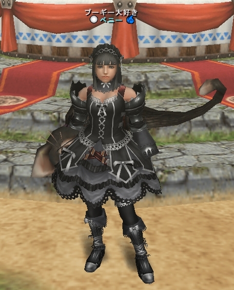 この装備に合わせて黒髪にしてみました。